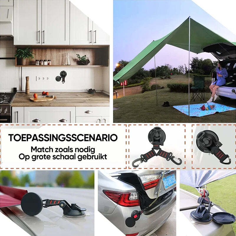 Convenient: the suction anchor is a better way to secure almost anything. No more worries about loads that are not safely secured. Also tie tents and tarps to cars and trucks for easy camping.